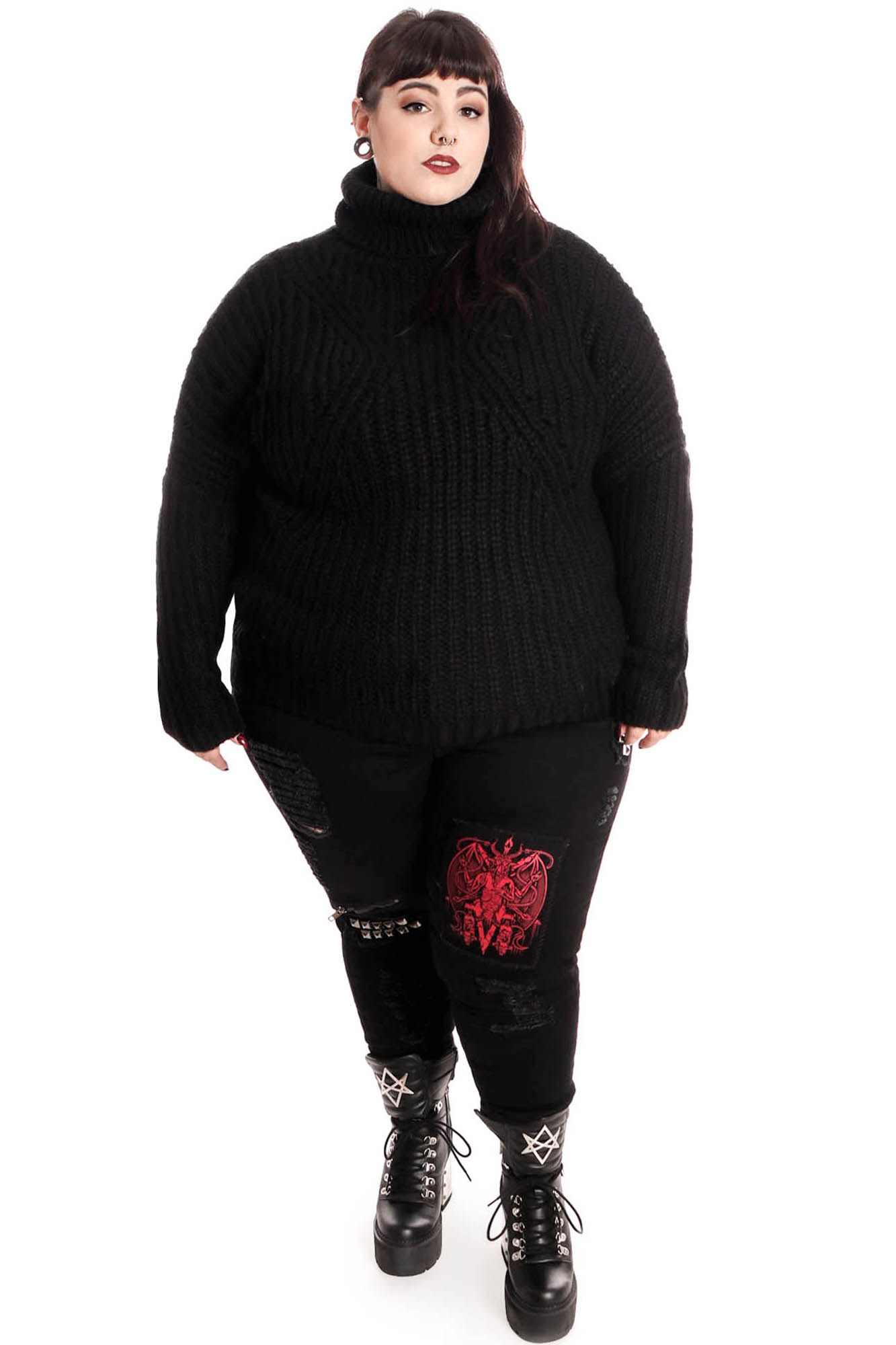 Are u ready to get real cozy with your dark side? The 'Aeon' knit sweater is perfect for chill/adventures/cold days/whatever. Super-soft and chunky knit with a high turtleneck and extra long-length so can easily be dressed up or down depending on yer moon/mood.