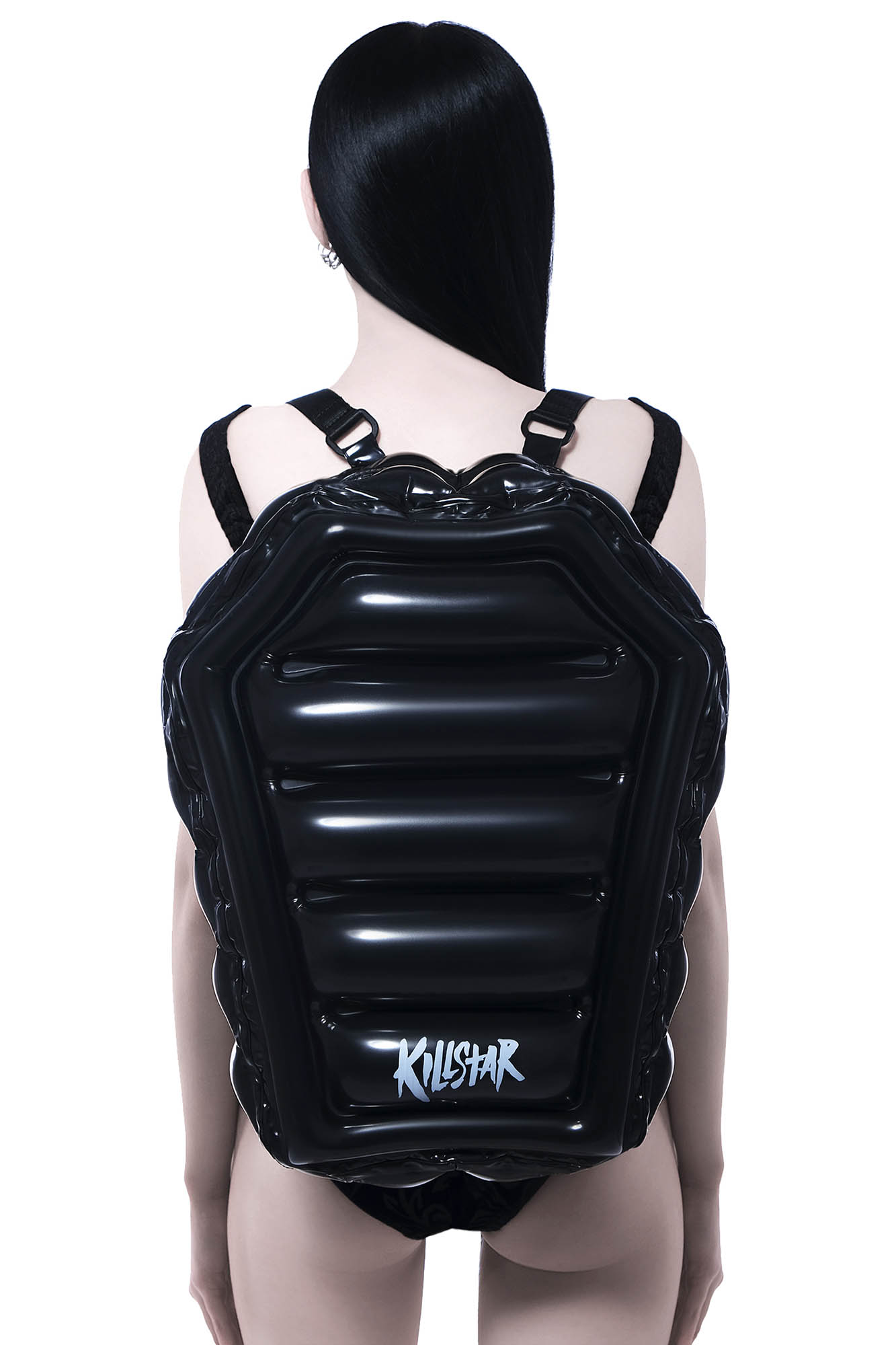 Forever fun under the midnight sun. Get into the summer goth spirit with the 'Mall Goth' inflatable backpack - extra-large coffin shape with zip closure and adjustable straps!